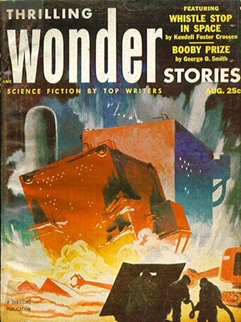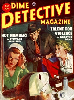 {Airing at 7 PM on a Saturday evening in early August of 1953, this episode of Broadway Is My Beat got the neighborhood gang in the mood for more danger and drama they hoped to find in some of their favorite pulp magazines. So the next day after church and a quick change of clothes found them at the nearby newsstand. They found what they were looking for in the following detective and SF pulps. Dime Detective (1931-53) was one of Popular Publications’ line of detective pulps, and the most popular, publishing a total of 274 issues in its 20+ year run, mostly as a monthly. It was a bimonthly in 1953. Imagination (1950-58) began as one of Raymond A. Palmer’s many SF pulp forays, but Palmer sold it to William Hamling who took over as editor with the third issue, remaining at the helm throughout the magazine’s 8-year run. It was a monthly in 1953. Thrilling Wonder Stories (1936-55), along with Planet Stories and Startling Stories formed a loose triumvirate of SF pulps known for their colorful escapist adventure stories set on other worlds. Page-turning, action-oriented storylines ruled the day as did a wink and a nod at accurate science, unfettered imagination taking precedence and on an equal footing with the heroes, damsels in distress, the wonders of far flung science, and assorted bad actors, including the beloved and favored among the young readership—bug-eyed monsters (BEMs). TWS was a bimonthly in 1953 though it managed only 5 issues that year.}