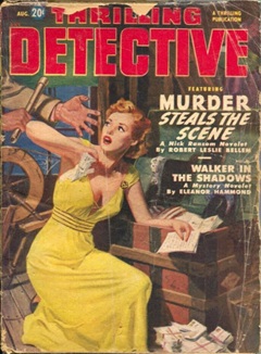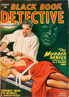 [Left: Black Book Detective, Sum/50 – Center: 15 Mystery Stories, 6/50 – Right: Thrilling Detective, 8/50]