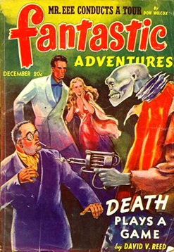 {“Men Call Me Mad” aired on the last Friday before Christmas in 1941. It found the neighborhood gang eagerly awaiting the coming holiday and the days off from school, and anticipating their usual Saturday morning trip to the local newsstand where they could find relief via their favorite SF pulps from all of the news about the start of WW II with Japan, which had begun less than two weeks before when the Japanese had bombed our naval base at Pearl Harbor, Oahu, one of the Hawaiian islands. They were in luck that Saturday morning, and took home the magazines pictured below. Astonishing Stories (1940-43) lasted only 16 issues. It began as a bi-monthly in 1940 but thereafter managed only a hit and miss schedule to finish off its short run. From time to time they managed to attract some quality authors, witness the James MacCreigh title on the cover, MacCreigh being one of Frederik Pohl’s early pseudonyms. Astonishing Stories managed 4 irregular issues in 1941. Famous Fantastic Mysteries (1939-53) was the brainchild of editor Mary Gnaedinger, who filled a perceived niche for scientific and fantastic story reprints from before the time of the SF or Fantasy magazines. The concept was a hit and gave newer generations of readers a chance to read many classics that deserved a new audience. It was a bi-monthly in 1941. fantastic Adventures (1939-53) was begun by editor Raymond A. Palmer (RAP) as a sister companion magazine to Amazing Stories. At first it offered lighter, “frothier” fantasy according to one reliable source, but by the late 1940s was running pretty much the same sort of stories featured in Amazing though with a more fantastic streak to them, if that was possible. It was a monthly in 1941 though it managed only 10 issues.}