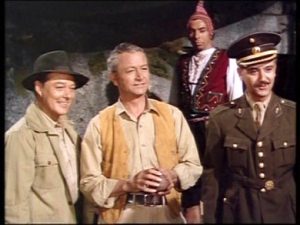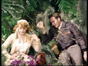Interesting also is that after having roles, or starring (many times as the handsome male lead), in over 100 films dating from the 1930s, Robert Young made a conscious decision to quit his film career in 1954, and almost immediately after the demise of Father Knows Best on radio in 1954 was one of the prime movers in getting the show on television, and in the same year. He never looked back, having become thoroughly disgusted with how Hollywood worked and how it treated most of its actors. Coincidentally, his final film in 1954 was Secret of the Incas starring Charlton Heston (Heston, photo at left; Young in center of photo at right). If ever there was a precursor or model for the Indiana Jones films, this was surely it. Heston plays Harry Steele in Secret of the Incas as a pilot, adventurer, and tour guide in Peru, who then gets involved in attempting to find a  “golden starburst” relic stolen from the ancient Temple of the Sun, believed to have the power to restore the once proud Incan civilization. Lux Radio Theater ran an hour long dramatization of the film in December of 1954 with most of the major film actors reprising their roles.