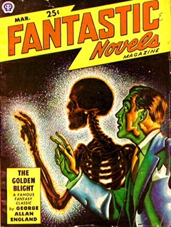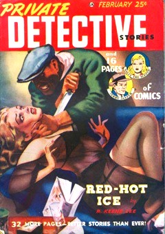 {This episode of Let George Do It aired on a Monday evening in late March of 1949 at 10 PM Central time. A love mystery (even though it included a murder) was not exactly of the dangerous variety the neighborhood gang was hoping for from a detective show, so when they gathered at the local newsstand the following afternoon after school they looked immediately for the magazines they knew held the stories of adventure and danger they craved. Black Mask (1920-51) came to be known as “the finest detective pulp magazine ever published,” in no small part due to publishing stories like Dashiell Hammett’s classic The Maltese Falcon as a five-part serial beginning with its September 1929 issue and running through its January 1930 issue. Black Mask was a bimonthly in 1949. Fantastic Novels (1940-41/1948-51) was the brainchild of editor Mary Gnaedinger as an answer in part from fans who requested stories of the scientific and fantastic variety from previous decades before the advent of more than one or two SF or Fantasy magazines. It was a solid success despite its relatively short run. It was a bimonthly in 1949. Private Detective Stories (1937-50) came to be known as a somewhat sanitized version of the much racier Spicy Detective, but with less sexually suggestive covers and a toned down psychopathology element to the stories (but not by much according to at least one account). Its final two years saw it adding 16 pages of comics (from psychopathology to comics—go figure) and dropping the “Stories” from the title with the September 1949 issue. Though a bimonthly in 1949 it managed only 5 issues.}
