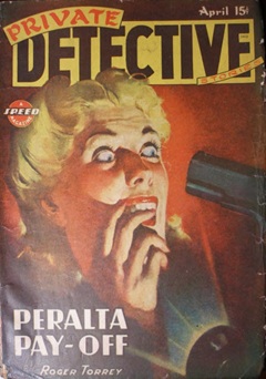 {Airing on a Tuesday in their particular market, the neighborhood gang made their way to the corner newsstand the next day after school to find stories to get their blood moving much as the episode of The Strange Dr. Weird had done the night before. Detective Tales (1935-53) was one of Popular Publications’ most successful detective pulps. All but the final 3 years of its run it was a monthly, including 1945. New Detective (1941-55) promised the newest in crime fiction written by many of the most popular authors, with an emphasis on police detectives. It was a bi-monthly throughout its run. Private Detective (1937-50) appeared a few years after the advent of the “Spicy” magazines (Spicy Detective Stories, Spicy Mystery Stories, Spicy Adventure Stories, etc.). It watered down some of its racier covers and cut back (not by much) on some of the psychopathology characterizing a noticeable percentage of its stories. It was a monthly for most of its run (including 1945), with a hit and miss schedule for its last 5 years.}