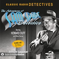 For all but its final radio season Howard Duff (1913-1990, photo at right) would star as Sam Spade and Lurene Tuttle would co-star as Spade’s secretary Effie Perrine. Duff would go on in later years to play various roles in quite a few films, and later with the advent of television would enjoy a lengthy career in many shows as star or character actor (drama and detective primarily) and was an easily recognizable presence on both the silver and small screens. Like Spade’s creator in the late 1940s (pre-HUAC, but Hammett failing to answer a Congressional Committee’s questions under oath stemming from his overt communist dealings), but years later and owing to a different set of circumstances, Duff found himself in the crosshairs of the early 1950s McCarthy-era House Unamerican Activities Committee (HUAC) and was labeled a communist subversive. It was at this point that this soft “blackballing” dovetailed with his burgeoning tv and film career that made it advantageous for him to leave the radio series, at which point Stephen Dunne would take over as the voice of Sam Spade for the series’s final 1950-51 season. According to the writeup by Radio Spirits on their 2014 calendar, on which Duff has the November slot: “A lot of talent came out of the Armed Forces Radio Service at the conclusion of the Second World War. One of the most outstanding examples was an energetic young sergeant named Howard Duff, born on November 24, 1913. A staff announcer for many AFRS features during the war, he was ready for the big time as soon as he doffed the uniform. It didn’t take long for him to land the role of a lifetime, bringing Dashiell Hammett’s legendary private eye Sam Spade to the microphone. In his four years in the role, Duff did the impossible–he replaced Humphrey Bogart’s film version as the definitive embodiment of the Hammett character: tough, yet vulnerable; hardboiled, yet with a sense of humor about his weekly predicaments. Among the legions of postwar radio detectives, Duff’s Spade stood out as one of the few truly originals.”